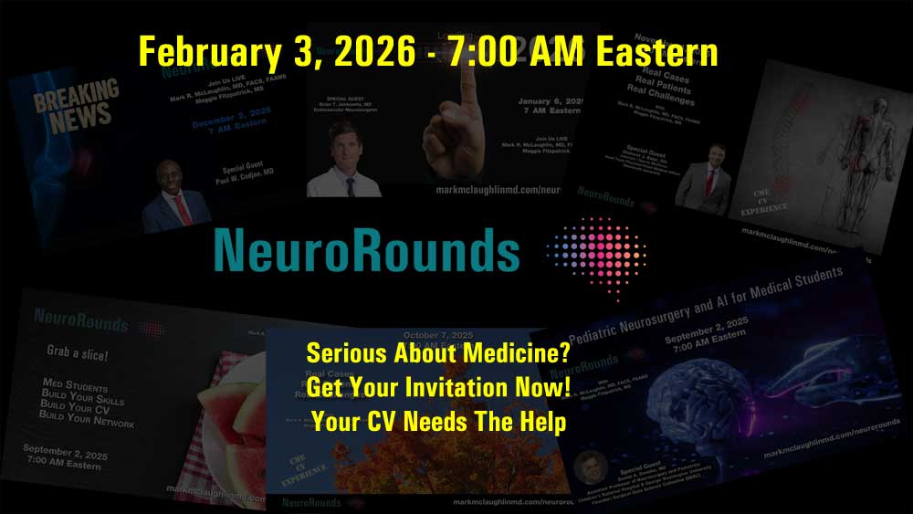 Join Mark R. McLaughlin, MD, FACS, FAANS and med-student co-host Maggie Fitzpatrick, MS along with attendees from around the world.