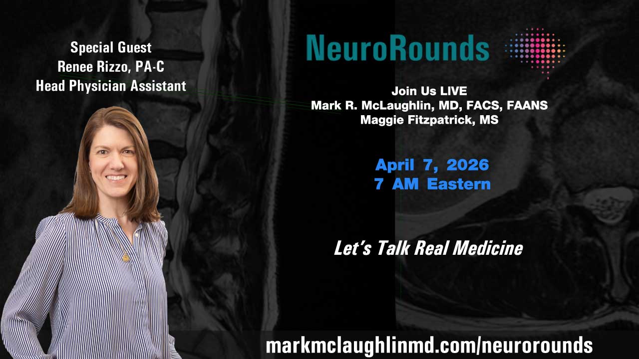 NeuroRounds is hosted by neurosurgeon Mark McLaughlin, MD and medical student Maggie Fitzpatrick, MS.
