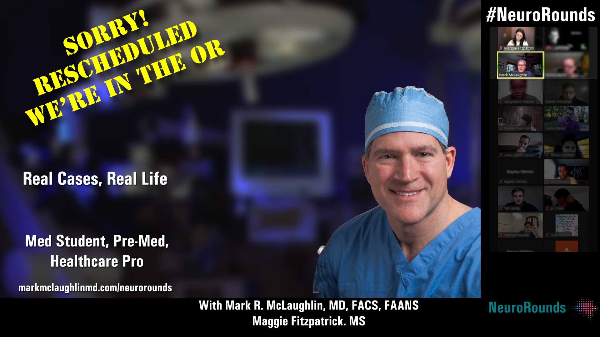 Join Mark R. McLaughlin, MD, FACS, FAANS, and medical-student co-host Maggie Fitzpatrick, MS, with participants from around the world.